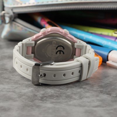 Este relógio Calypso Kids tem uma caixa de Resina com um diâmetro de 35 mm e está equipado com uma bracelete de Resina. A caixa possui um movimento Bao Jie e o relógio tem um vidro Acrílico.