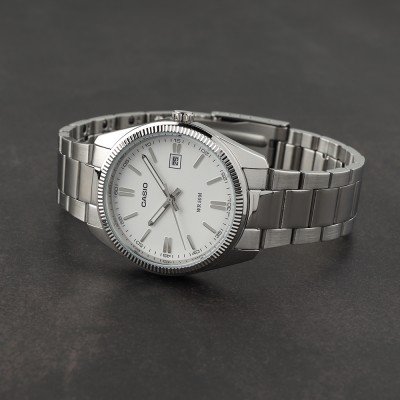 Este relógio Casio tem uma caixa de Liga de Metal com um diâmetro de 38.5 mm e está equipado com uma bracelete de Inox. A caixa possui um movimento Casio e o relógio tem um vidro Mineral.