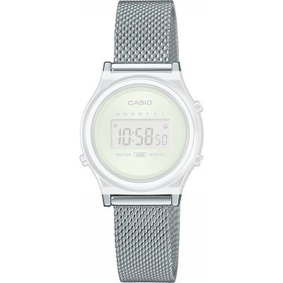 Esta bracelete de relógio Casio é feita de aço inoxidável e está fixada ao relógio através de pinos de pressão. A bracelete tem uma largura de 13 mm e fecha através de fecho milanese. A bracelete tem uma montagem a direito, o que significa que esta bracelete é adequada para todos os relógios Casio com montagem da bracelete a direito.