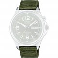 Esta bracelete de relógio Casio é feita de têxtil/Couro e está fixada ao relógio através de pinos de pressão. A bracelete tem uma largura de 22 mm e fecha através de fecho. A bracelete tem uma montagem a direito, o que significa que esta bracelete é adequada para todos os relógios Casio com montagem da bracelete a direito.