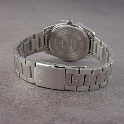 Este relógio Casio tem uma caixa de Liga de Metal com um diâmetro de 38.5 mm e está equipado com uma bracelete de metal. A caixa possui um movimento Casio e o relógio tem um vidro Mineral.