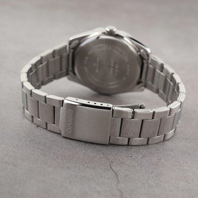 Este relógio Casio tem uma caixa de Liga de Metal com um diâmetro de 38.5 mm e está equipado com uma bracelete de Inox. A caixa possui um movimento Casio e o relógio tem um vidro Mineral.