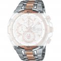 Esta bracelete de relógio Casio Edifice é feita de aço inoxidável e está fixada ao relógio através de pinos em aço. A bracelete tem uma largura de 27 mm e fecha através de fivela dobrável. A bracelete não tem uma montagem a direito, o que significa que esta bracelete só é adequada para os relógios listados abaixo.