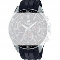 Esta bracelete de relógio Casio Edifice é feita de resina e está fixada ao relógio através de pinos de pressão. A bracelete tem uma largura de 22 mm e fecha através de fecho. A bracelete não tem uma montagem a direito, o que significa que esta bracelete só é adequada para os relógios listados abaixo.