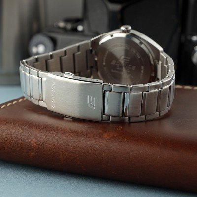 Este relógio Casio Edifice tem uma caixa de Inox com um diâmetro de 39 mm e está equipado com uma bracelete de Inox. A caixa possui um movimento Casio e o relógio tem um vidro Safira.