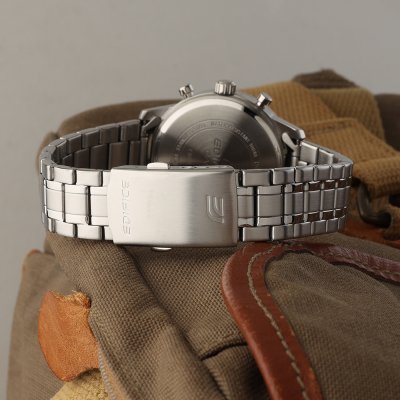 Este relógio Casio Edifice tem uma caixa de Inox com um diâmetro de 41 mm e está equipado com uma bracelete de Inox. A caixa possui um movimento Casio e o relógio tem um vidro Mineral.