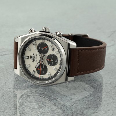 Este relógio Casio Edifice tem uma caixa de Inox com um diâmetro de 40 mm e está equipado com uma bracelete de couro. A caixa possui um movimento Casio e o relógio tem um vidro Safira.