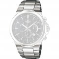 Esta bracelete de relógio Casio Edifice é feita de aço inoxidável e está fixada ao relógio através de pinos de pressão. A bracelete tem uma largura de 22 mm e fecha através de fivela dobrável com botões de pressão. A bracelete não tem uma montagem a direito, o que significa que esta bracelete só é adequada para os relógios listados abaixo.