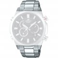 Esta bracelete de relógio Casio Edifice é feita de aço inoxidável e está fixada ao relógio através de pinos de pressão. A bracelete tem uma largura de 22 mm e fecha através de fivela dobrável. A bracelete não tem uma montagem a direito, o que significa que esta bracelete só é adequada para os relógios listados abaixo.
