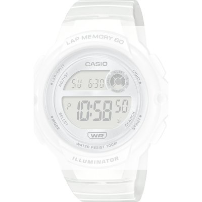 Esta bracelete de relógio Casio é feita de resina e está fixada ao relógio através de pinos de pressão. A bracelete tem uma largura de 18 mm e fecha através de fecho. A bracelete não tem uma montagem a direito, o que significa que esta bracelete só é adequada para os relógios listados abaixo.