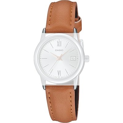 Esta bracelete de relógio Casio é feita de couro e está fixada ao relógio através de pinos de pressão. A bracelete tem uma largura de 14 mm e fecha através de fecho. A bracelete tem uma montagem a direito, o que significa que esta bracelete é adequada para todos os relógios Casio com montagem da bracelete a direito.