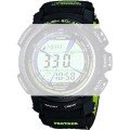 Esta bracelete de relógio Casio é feita de têxtil/Couro e está fixada ao relógio através de pinos de pressão. A bracelete tem uma largura de 22 mm e fecha através de fecho. A bracelete tem uma montagem a direito, o que significa que esta bracelete é adequada para todos os relógios Casio com montagem da bracelete a direito.