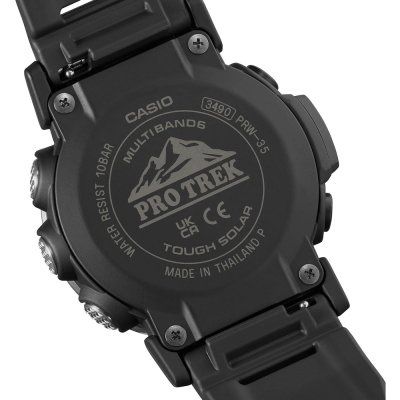 Este relógio Casio tem uma caixa de Resina com um diâmetro de 45.2 mm e está equipado com uma bracelete de Resina. A caixa possui um movimento Casio e o relógio tem um vidro Mineral.