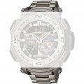 Esta bracelete de relógio Casio é feita de aço inoxidável e está fixada ao relógio através de pinos de pressão. A bracelete tem uma largura de 27 mm e fecha através de fivela dobrável. A bracelete não tem uma montagem a direito, o que significa que esta bracelete só é adequada para os relógios listados abaixo.