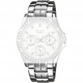 Esta bracelete de relógio Casio é feita de aço inoxidável e está fixada ao relógio através de pinos de pressão. A bracelete tem uma largura de 18 mm e fecha através de fivela dobrável. A bracelete não tem uma montagem a direito, o que significa que esta bracelete só é adequada para os relógios listados abaixo.