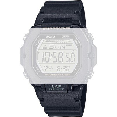 Esta bracelete de relógio Casio é feita de resina e está fixada ao relógio através de pinos de pressão. A bracelete tem uma largura de 20 mm e fecha através de fecho. A bracelete não tem uma montagem a direito, o que significa que esta bracelete só é adequada para os relógios listados abaixo.