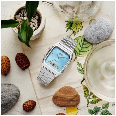 Este relógio Casio tem uma caixa de Resina com um diâmetro de 29.8 mm e está equipado com uma bracelete de Inox. A caixa possui um movimento Casio e o relógio tem um vidro Acrílico.