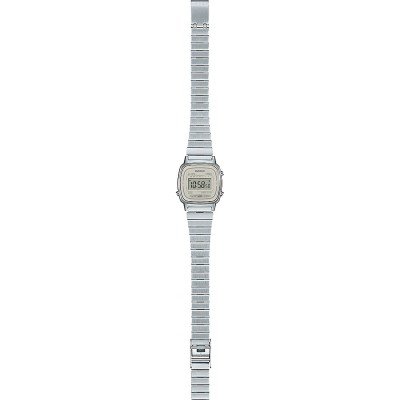 Este relógio Casio tem uma caixa de Liga de Metal com um diâmetro de 24.6 mm e está equipado com uma bracelete de Inox. A caixa possui um movimento Casio e o relógio tem um vidro Acrílico.