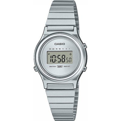 Este relógio Casio tem uma caixa de Resina com um diâmetro de 24.6 mm e está equipado com uma bracelete de Inox. A caixa possui um movimento Casio e o relógio tem um vidro Acrílico.