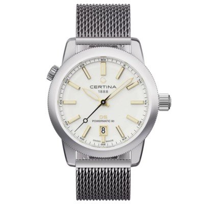 Este relógio Certina tem uma caixa de Inox com um diâmetro de 42 mm e está equipado com uma bracelete de Inox. A caixa possui um movimento ETA e o relógio tem um vidro Safira anti-reflexo única.