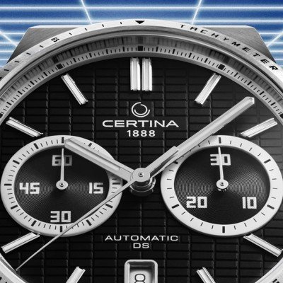 A série DS-7 Chrono Auto é inspirada no desporto imensamente popular do padel, do qual a Certina patrocina torneios há anos. O relógio faz referência a este desporto cheio de ação com inúmeros detalhes. O mostrador apresenta uma estrutura em grelha que faz lembrar uma rede de campo de padel e o movimento automático apresenta uma mola de balanço em silicone anti-magnético que pode suportar até os rallies mais rápidos. O resultado é um relógio desportivo dinâmico e jovem para usar todos os dias.