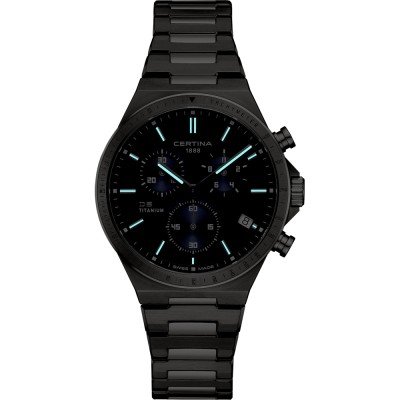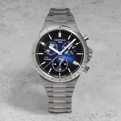 Este relógio Certina tem uma caixa de Titânio com um diâmetro de 41 mm e está equipado com uma bracelete de Titânio. A caixa possui um movimento ETA e o relógio tem um vidro Safira anti-reflexo única.