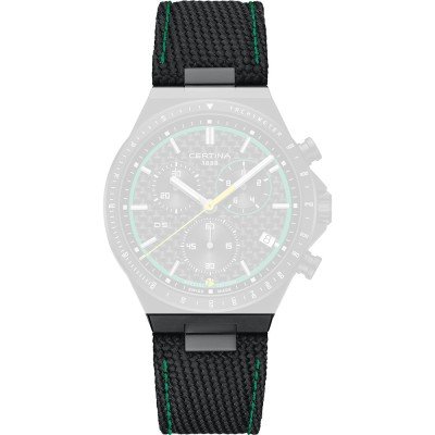 Esta bracelete de relógio Certina é feita de tecido e está fixada ao relógio através de pinos de pressão. A bracelete tem uma largura de 22 mm. A bracelete não tem uma montagem a direito, o que significa que esta bracelete só é adequada para os relógios listados abaixo.
