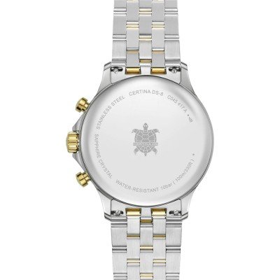 Este relógio Certina tem uma caixa de Inox com um diâmetro de 41 mm e está equipado com uma bracelete de Inox. A caixa possui um movimento ETA e o relógio tem um vidro Safira anti-reflexo única.