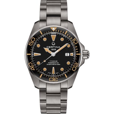 Este relógio de mergulho em titânio da Certina garante um maior grau de resistência à água graças às suas patenteadas juntas duplas na coroa aparafusada com fecho. O relógio está equipado com um movimento automático ETA PowerMatic 80.611 fabricado na Suíça com pelo menos 80 horas de reserva de energia. Além disso, o relógio possui uma mola antimagnética Nivachron, que o torna mais resistente a choques fortes, por exemplo, durante desportos (aquáticos). O cristal de safira antirreflexo torna o relógio sempre fácil de ler, mesmo em locais com muita luz solar.