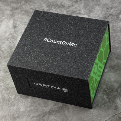 O DS Action Diver de 38 mm tem um apelo unissexo. Não só devido ao seu tamanho, mas também à sua versatilidade. É um relógio de mergulho funcional de 30 ATM que cumpre os rigorosos requisitos da norma ISO 6425 e é leve, com uma caixa em titânio e uma luneta em alumínio. Os ponteiros e os índices são revestidos com Super-LumiNova para uma excelente visibilidade no escuro e um vidro de safira antirreflexo garante uma boa legibilidade à luz do sol. Acionado por um movimento automático Powermatic de grau 80.611, fabricado na Suíça, com uma reserva de marcha de 80 horas, não é apenas um relógio de mergulho clássico esteticamente agradável, mas também uma potência automática.