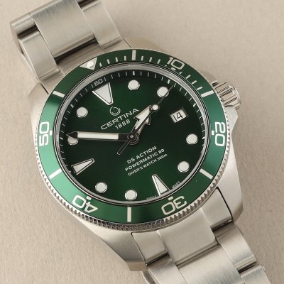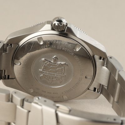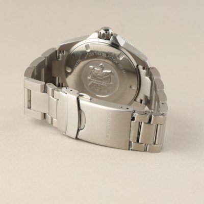 Este relógio Certina tem uma caixa de Inox com um diâmetro de 38 mm e está equipado com uma bracelete de Inox. A caixa possui um movimento ETA e o relógio tem um vidro Safira anti-reflexo única.