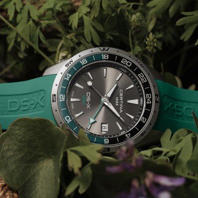 Este relógio Certina tem uma caixa de Inox com um diâmetro de 41.2 mm e está equipado com uma bracelete de borracha. A caixa possui um movimento ETA e o relógio tem um vidro Safira anti-reflexo única.