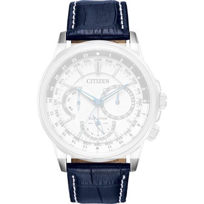 Esta bracelete de relógio Citizen é feita de couro e está fixada ao relógio através de pinos de pressão. A bracelete tem uma largura de 23 mm e fecha através de fivela desdobrável. A bracelete tem uma montagem a direito, o que significa que esta bracelete é adequada para todos os relógios Citizen com montagem da bracelete a direito.