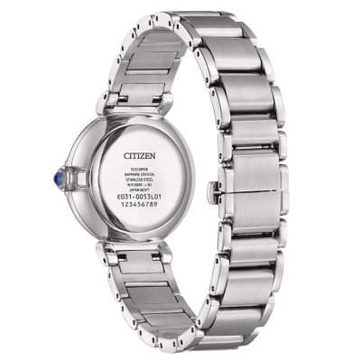 Este relógio Citizen tem uma caixa de Inox com um diâmetro de 29.5 mm e está equipado com uma bracelete de Inox. A caixa possui um movimento Citizen e o relógio tem um vidro Safira.