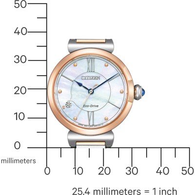 Este relógio Citizen tem uma caixa de Inox com um diâmetro de 29.5 mm e está equipado com uma bracelete de Inox. A caixa possui um movimento Citizen e o relógio tem um vidro Safira.
