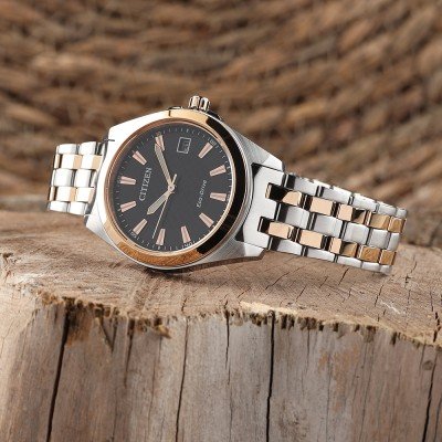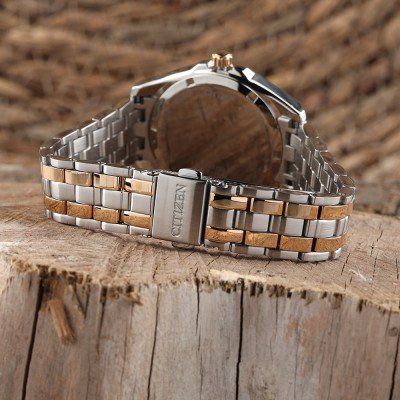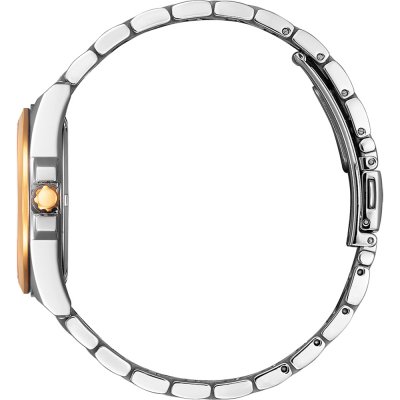 Este relógio Citizen tem uma caixa de Inox com um diâmetro de 33.5 mm e está equipado com uma bracelete de Inox. A caixa possui um movimento Citizen e o relógio tem um vidro Safira.