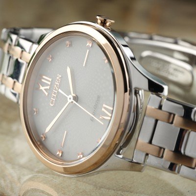 Este relógio Citizen tem uma caixa de Inox com um diâmetro de 32 mm e está equipado com uma bracelete de Inox. A caixa possui um movimento Citizen e o relógio tem um vidro Mineral.