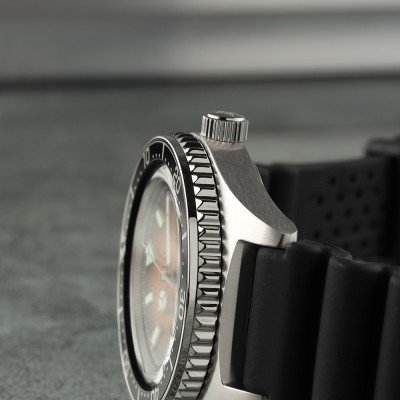Este relógio Citizen tem uma caixa de Inox com um diâmetro de 41 mm e está equipado com uma bracelete de borracha. A caixa possui um movimento Miyota e o relógio tem um vidro Mineral.