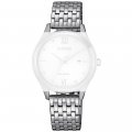 Esta bracelete de relógio Citizen é feita de aço inoxidável e está fixada ao relógio através de pinos de pressão. A bracelete tem uma largura de 14 mm e fecha através de fivela butterfly com botões de pressão. A bracelete não tem uma montagem a direito, o que significa que esta bracelete só é adequada para os relógios listados abaixo.