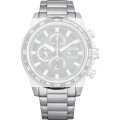 Esta bracelete de relógio Citizen é feita de aço inoxidável e está fixada ao relógio através de pinos de pressão. A bracelete tem uma largura de 22 mm e fecha através de fivela dobrável com botões de pressão. A bracelete tem uma montagem a direito, o que significa que esta bracelete é adequada para todos os relógios Citizen com montagem da bracelete a direito.