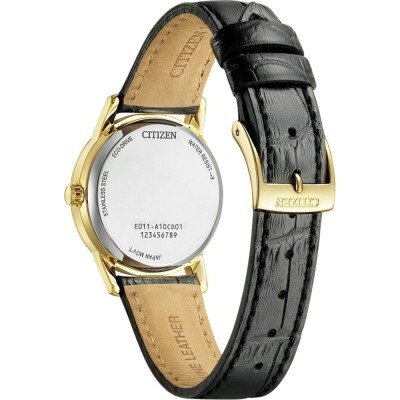 Este relógio Citizen tem uma caixa de Inox com um diâmetro de 30 mm e está equipado com uma bracelete de couro. A caixa possui um movimento Citizen e o relógio tem um vidro Safira.