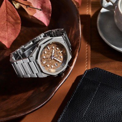 Este belo relógio automático Citizen de cor salmão está limitado a 1.700 peças. O mostrador especial estruturado é inspirado na flor de cerejeira japonesa - sakura.