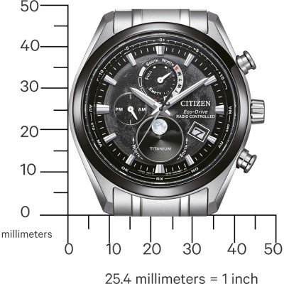 Este relógio Citizen tem uma caixa de Super Titânio com um diâmetro de 43 mm e está equipado com uma bracelete de Super Titânio. A caixa possui um movimento Citizen e o relógio tem um vidro Safira.