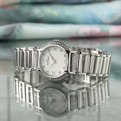 Este relógio Claude Bernard tem uma caixa de Inox com um diâmetro de 27 mm e está equipado com uma bracelete de Inox. A caixa possui um movimento Ronda e o relógio tem um vidro Mineral.
