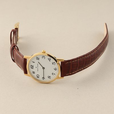 Este relógio Claude Bernard tem uma caixa de Inox com um diâmetro de 33 mm e está equipado com uma bracelete de couro. A caixa possui um movimento Ronda e o relógio tem um vidro Mineral.