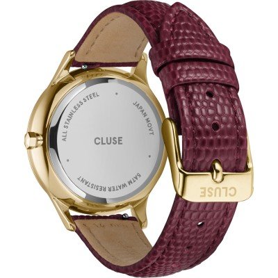 Este relógio Cluse tem uma caixa de Inox com um diâmetro de 34 mm e está equipado com uma bracelete de couro. A caixa possui um movimento Miyota e o relógio tem um vidro Mineral.