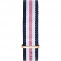 Esta bracelete de relógio Daniel Wellington é feita de tecido e está fixada ao relógio através de pinos de pressão. A bracelete tem uma largura de 18 mm e fecha através de fecho. A bracelete tem uma montagem a direito, o que significa que esta bracelete é adequada para todos os relógios Daniel Wellington com montagem da bracelete a direito.