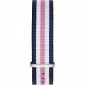 Esta bracelete de relógio Daniel Wellington é feita de tecido e está fixada ao relógio através de pinos de pressão. A bracelete tem uma largura de 18 mm e fecha através de fecho. A bracelete tem uma montagem a direito, o que significa que esta bracelete é adequada para todos os relógios Daniel Wellington com montagem da bracelete a direito.