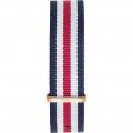 Esta bracelete de relógio Daniel Wellington é feita de tecido e está fixada ao relógio através de pinos de pressão. A bracelete tem uma largura de 20 mm e fecha através de fecho. A bracelete tem uma montagem a direito, o que significa que esta bracelete é adequada para todos os relógios Daniel Wellington com montagem da bracelete a direito.