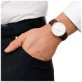 Este relógio Bristol de 40 mm, da gama clássica de relógios da Daniel Wellington, tem uma caixa em tom ouro rosae um mostrador branco. Uma bracelete, em couro castanho escuro, dá a este visual um aspecto descontraidamente elegante.